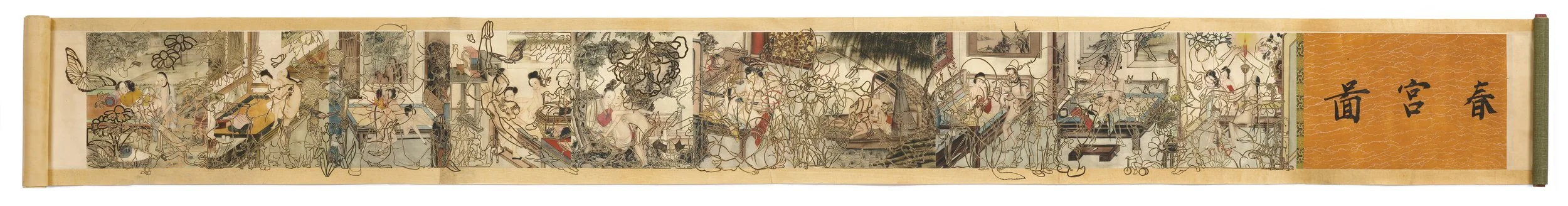 Tulips, 2021, hand-cut and pasted vintage printed paper on found vintage scroll, 9 1/2 x 72 inches SOLD